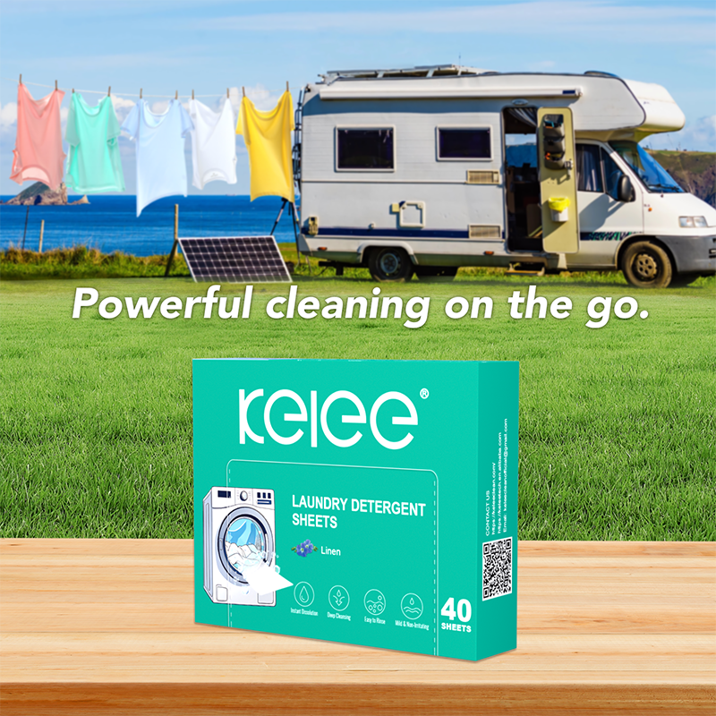 Kelee Laundry Detergent Sheets combine detergent and fabric softener in one sheet for effortless cleaning. Just toss a sheet into the washer with your clothes—no detergent needed. It absorbs dirt and dyes, leaving clothes fresh. Discard after use. Ideal for businesses seeking an eco-friendly, efficient laundry solution.
